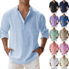 Nuestro tejido de mezcla de lino de alta calidad está diseñado para la comodidad y el uso diario. Esta elegante camiseta henley informal presenta un diseño de color sólido y un cierre con botones. Combina esta camisa con jeans o pantalones para un estilo simple pero sofisticado.