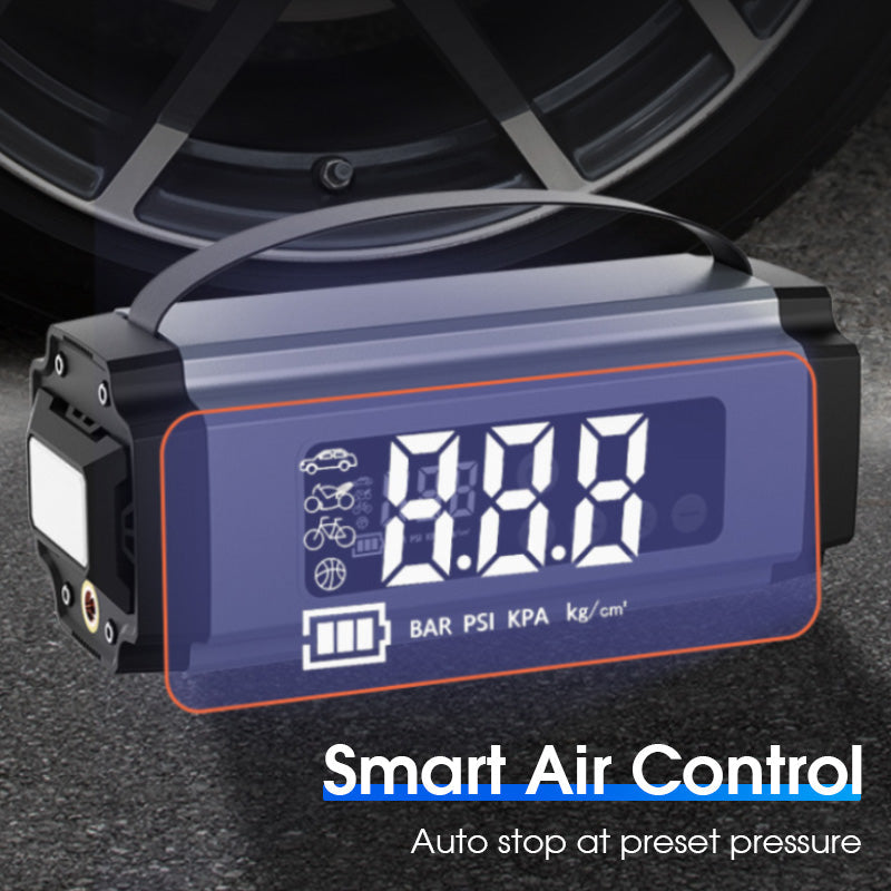 SMART AIR CONTROL: Features preset tire pressure settings and automatic stop function to prevent over-inflation. Built-in high-precision tire pressure monitoring ensures safe and accurate inflation for cars, motorcycles, bicycles, and other inflatables.
