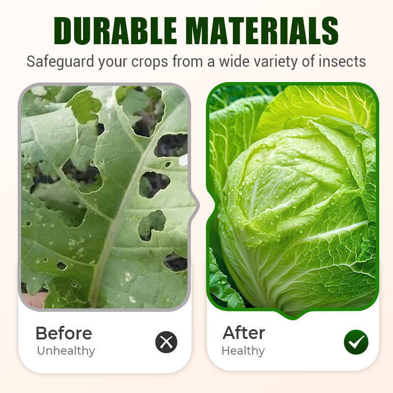 ENHANCED PROTECTION AGAINST PESTS – Safeguard your crops from a wide variety of insects. Our insect nets are designed to keep unwanted pests out, ensuring your vegetables and fruit trees thrive. With finely woven mesh, it prevents the entry of insects while allowing beneficial pollinators like bees to pass through, maintaining healthy ecosystems within your farmland or orchard.