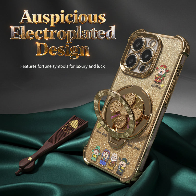 AUSPICIOUS ELECTROPLATED DESIGN - Make a statement with a shimmering, electroplated finish featuring traditional fortune symbols. This unique design not only offers a luxurious look but also brings a touch of prosperity and good luck to your device.