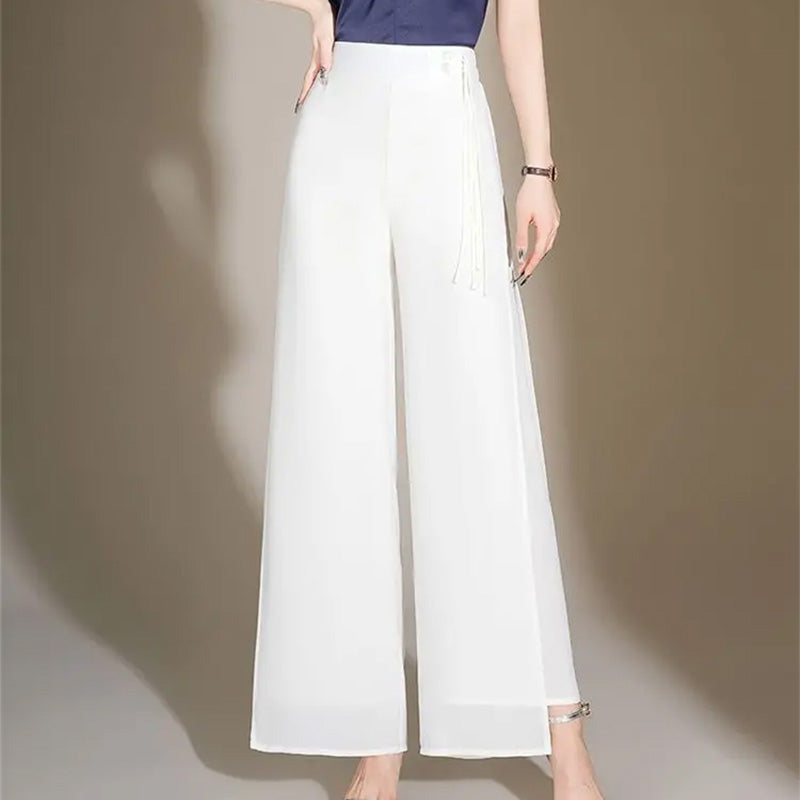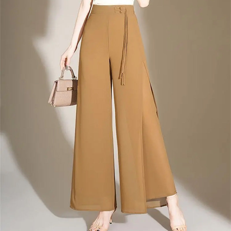 Women's Ankle-Length Chiffon Wide-Leg Pants